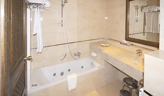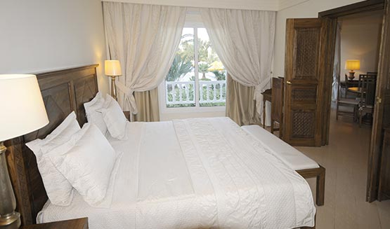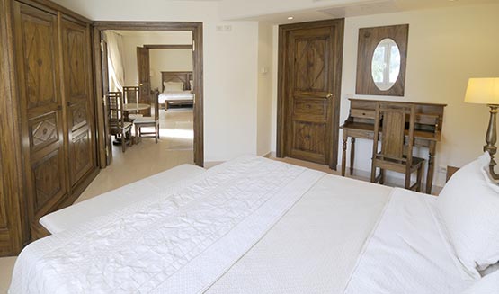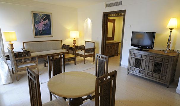 • Suite El Emir dispose de salon avec minibar et coin repas, avec 2 suites de lit double king size, salle de bain, dressing et coiffeuse.